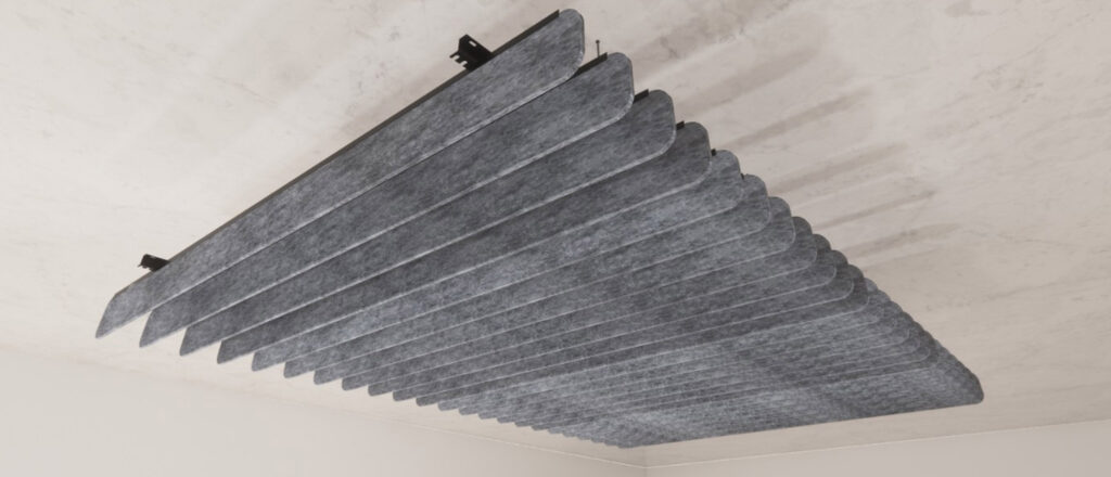 Simple Ceiling Baffles provide a complete solution for acoustic ceiling systems. Their alternating shapes create a dynamic, visually engaging ceiling pattern, while the baffles absorb sound to reduce reverberation and enhance overall acoustic comfort.